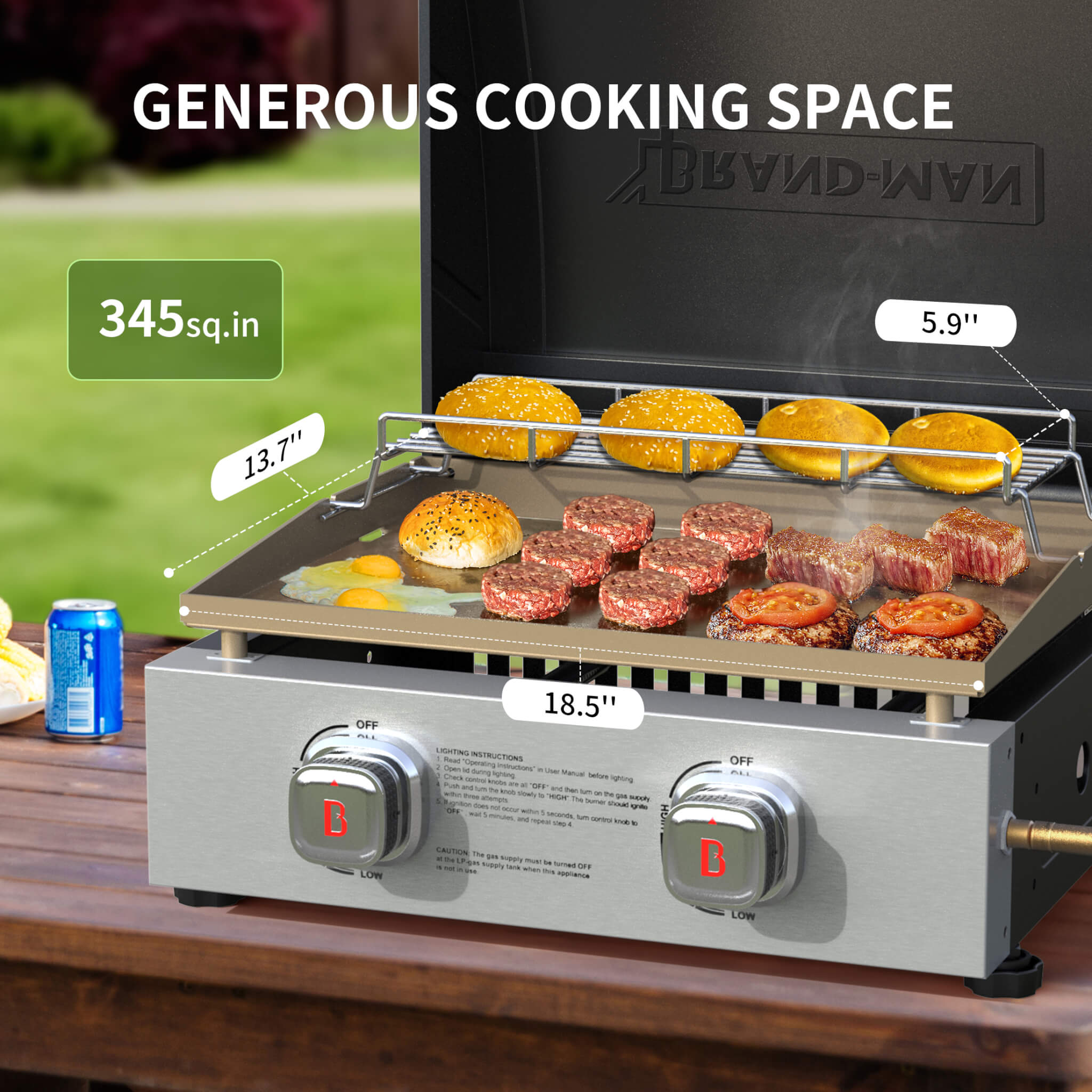 【Large Cooking Surface】Cook multiple dishes at once with a 345 sq. in. cooking area. The 91 sq. in. warming rack keeps food hot and ready to serve, ensuring everyone enjoys a fresh, warm meal