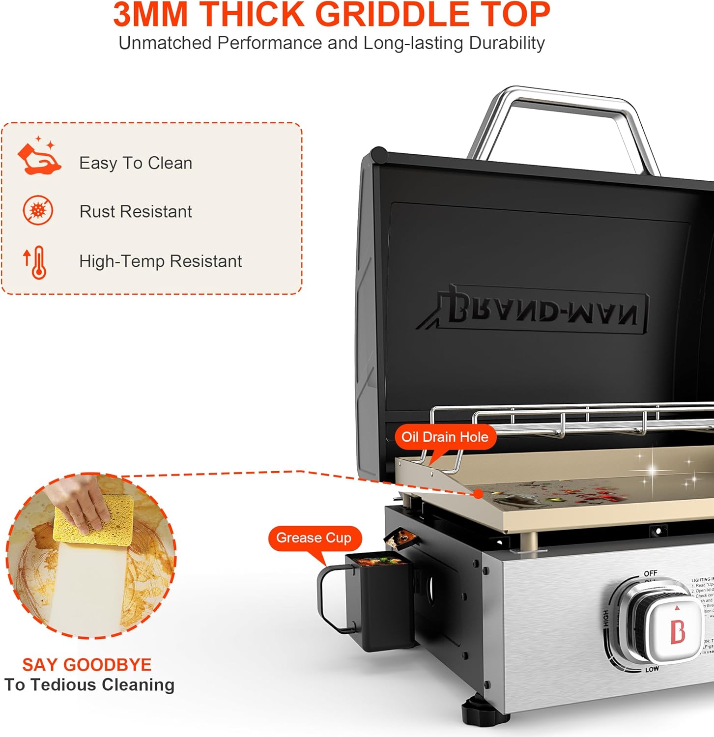 Brand-Man Portable Multi-feature Propane Griddle for Outdoor Cooking