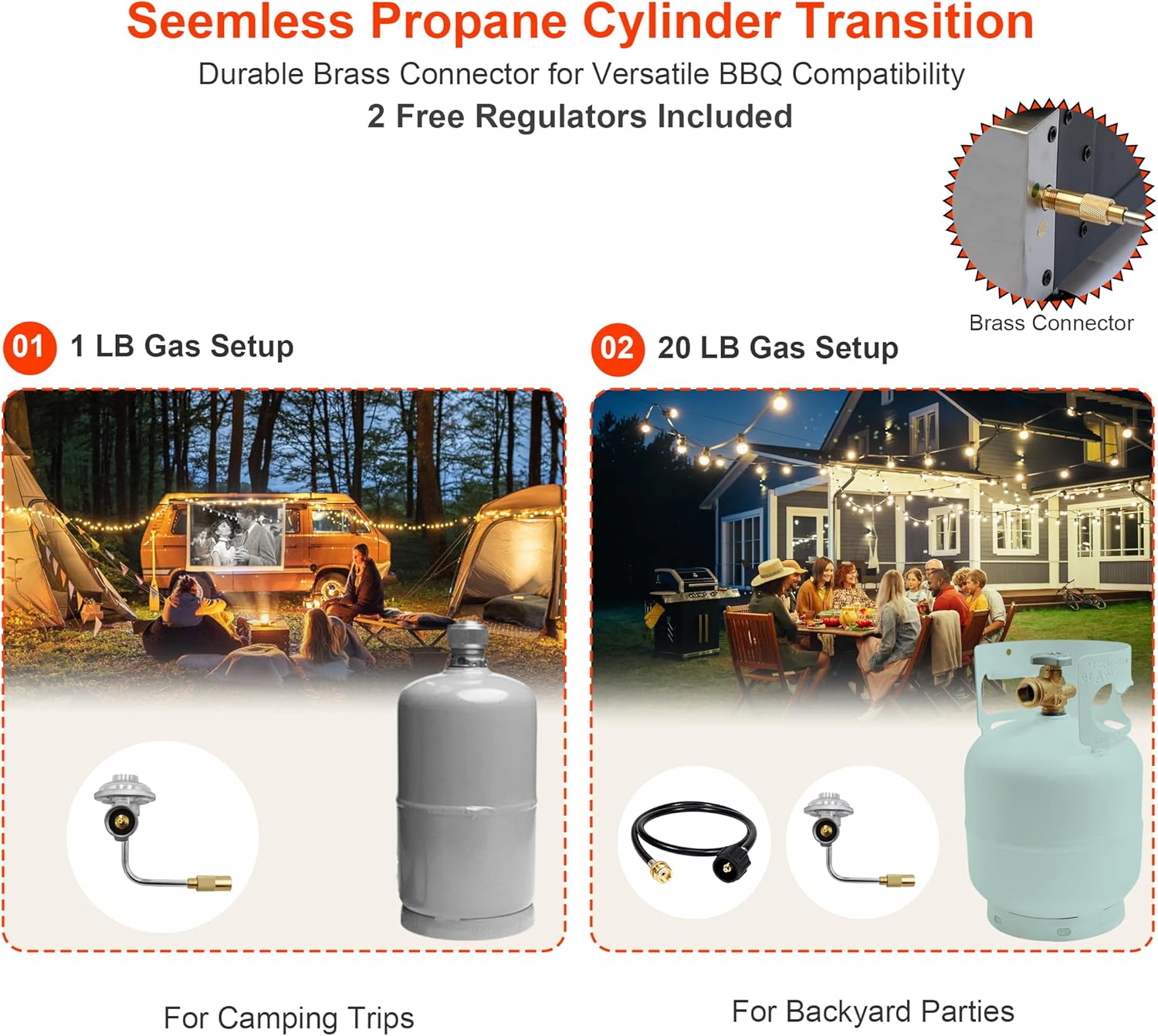 【Simple Operation & Installation】The connection design of the hose and valve is convenient and quick, no need to purchase additional parts, saving time and money. No need to worry about complicated assembly before grilling, allowing you to start cooking immediately