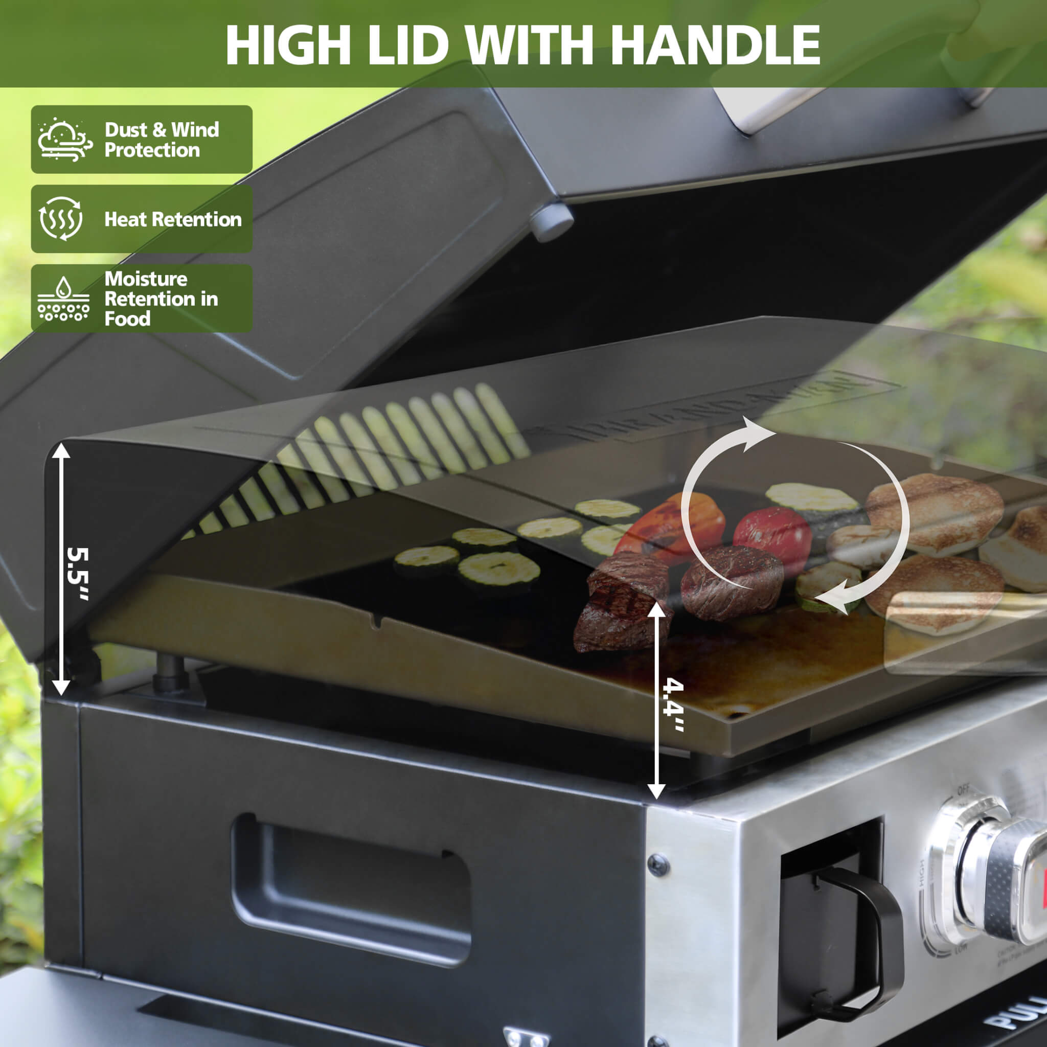 Execellent Heat Control: 3 stainless steel burners with total 28,000 BTUs meet all outdoor cooking needs, and heighten grill body help reduce heat flow out during cooking to avoid scalding