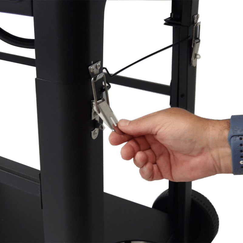 41.5” H x 43.75 W (shelves up) x 23” Deep at the wheels