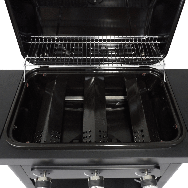 3 Stainless steel burners for fast heat up and individual cooking zones
