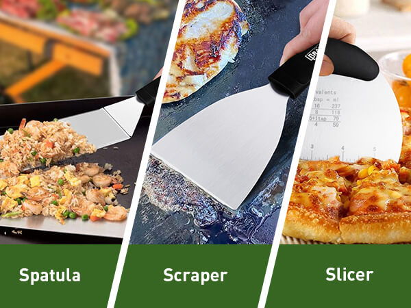 Versatile & Precise Tool: The spatula features a built-in serrated edge for cutting, while the scraper and slicer offer precise control for perfect grill marks. Ideal for a variety of tasks, from flipping to chopping and prepping food