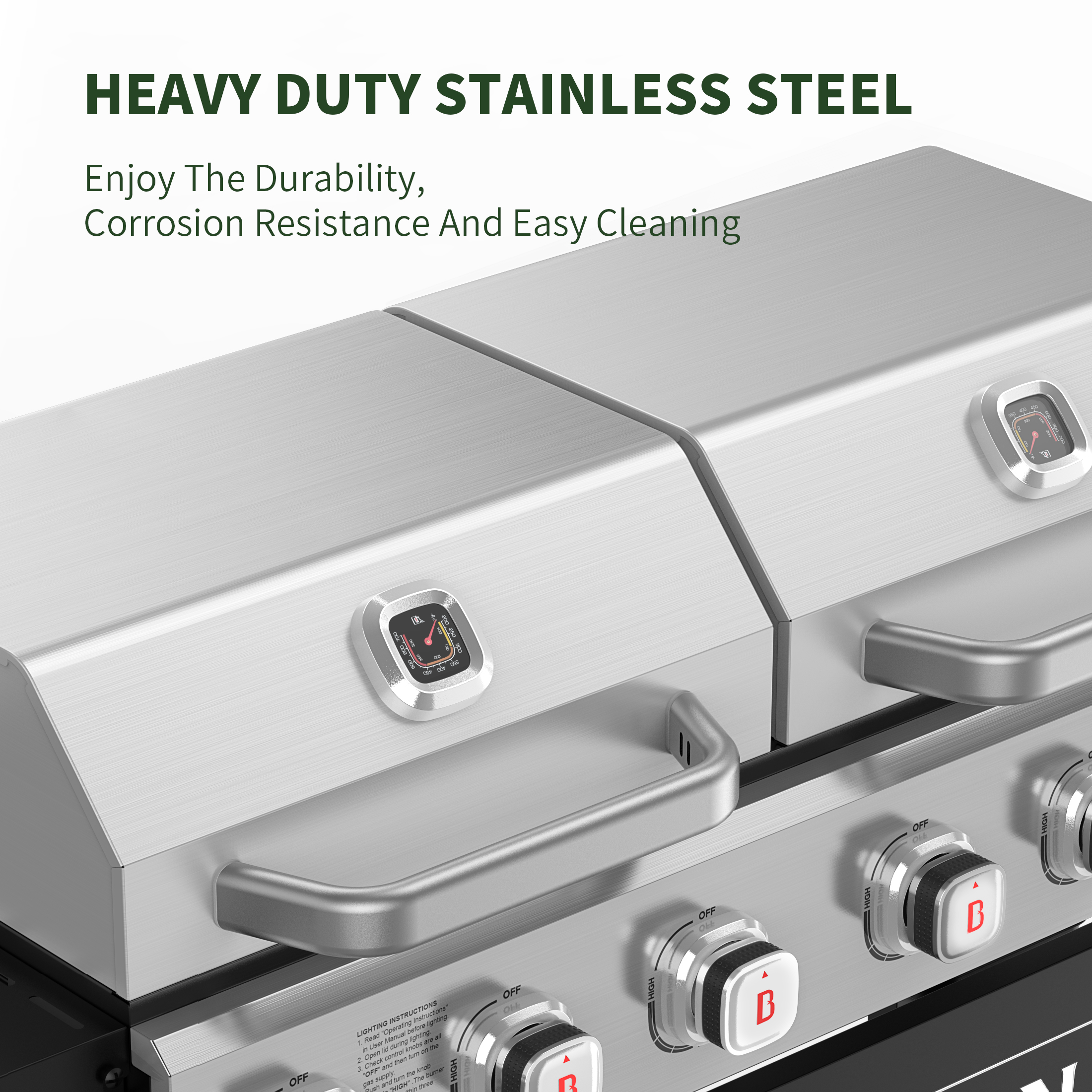 Discover the power of our innovative Gas Grill & Griddle, designed to meet versatile cooking with flexibility, efficiency, and safety. It doesn’t just offer a combination of grate and pan; it brings together the strength of heavy-duty stainless steel with the convenience of dual functionality.