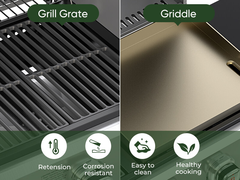 GRIDDLE GRILL COMBO: Perfect for every meal, from juicy steaks to sautéed veggies. Enjoy the versatility of grilling and griddling in one, making every meal fresh and flavorful. Perfect for any outdoor gathering