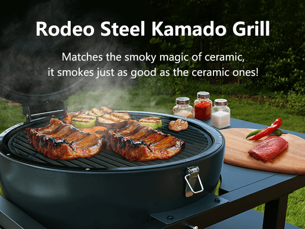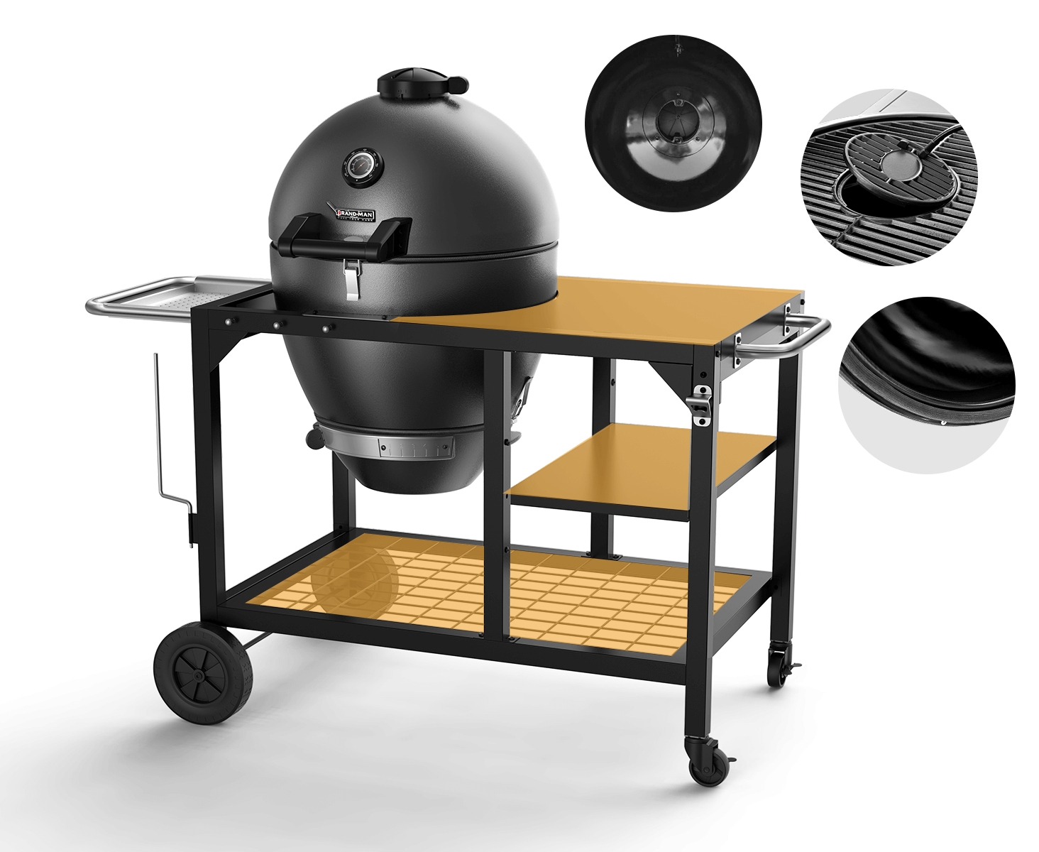 Brand-Man Charcoal Grill & Smoker Steel Kamado – 22″ Cast Iron Grates, Grilling Basket, Large Prep Table Cart, Ideal for Outdoor Cooking