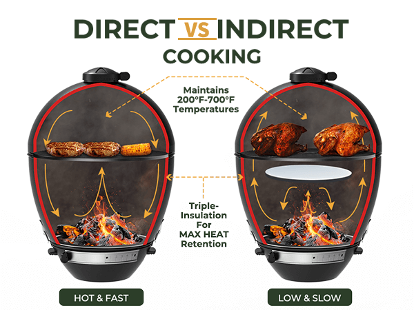 KAMADO CHARCOAL GRILL: Ideal for intense grilling and slow-cooking, our Kamado-style grill feature a coin-thickness double-layer design and mesh fiberglass gasket for superior heat retention, ensuring your food cooks evenly every time