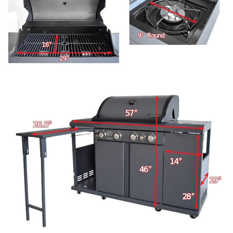 Grill Dimensions: 57” x 46” x 19.5” (Table Open 45.5”)