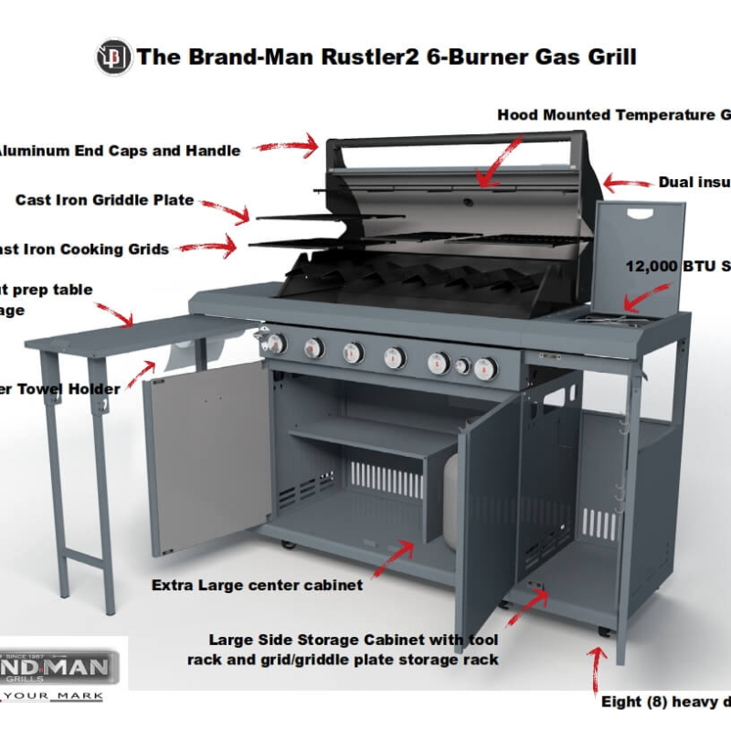 | Model Name | Rustler2 Six (6) Burner Propane Gas Grill Center & Kitchen Island by Brand-Man Grills |
