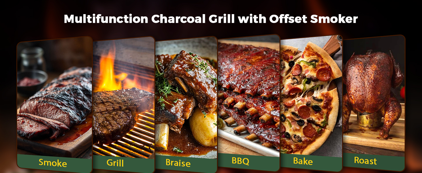 Dual Functionality: Experience the best of both worlds with our Charcoal Grill and Smoker Combo. Whether slow-smoking tender meats or searing them on high heat, this versatile unit delivers mouthwatering flavors every time
